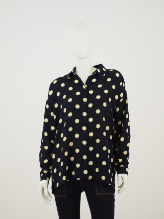 Marškinių tipo palaidinė, trikampiu kaklu, apykaklė surišama raišteliais
